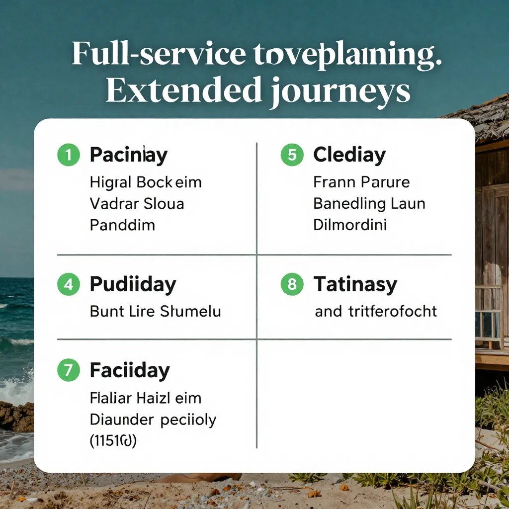 Designed for extended vacations and multi-destination trips, both domestic and international. Features a detailed 7-14 day itinerary with accommodation recommendations, transportation options, activity booking guidance, and local insights. Includes consultation sessions with our U.S.-based team and itinerary revisions.